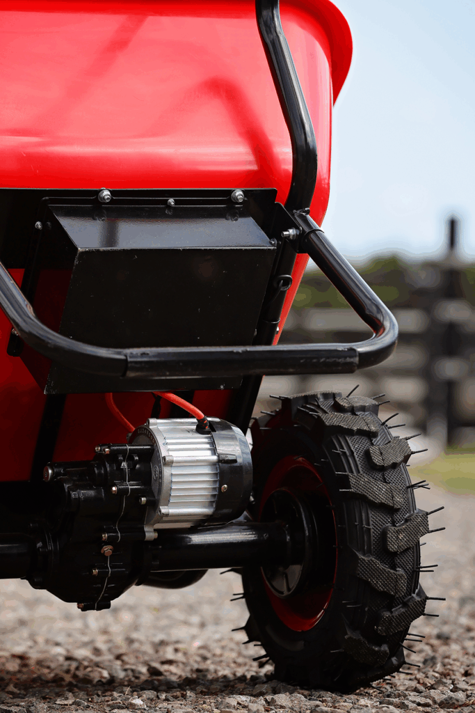 It’s fast enough to get the job done—but safely. The barrow gradually builds up speed rather than jolting forward, giving you smooth, controlled movement even with heavy loads or on uneven ground. It tops out at a steady walking pace (around 5km/h), so you stay in control at all times.